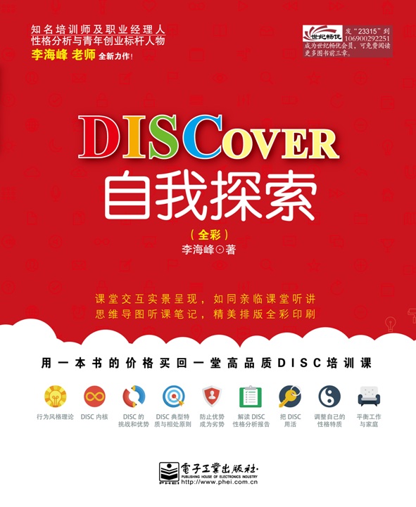 继畅销名著《DISC职场人格测试学》之后,DISC知名培训师李海峰的又一力作!以课堂交互式实景的形式,通过一个个真实、生动的案例,深入浅出地讲解了目前非常流行的DISC职场性格测试工具的原理和使用方法,语言幽默生动,具有极强的可读性和实用性。全书共分为九大模块,通过穿插四个时尚流行的电影片断场景及对三国人物、西游记团队等人物性格的剖析,使读者对自己和他人有更深入、具体、完整而客观的了解;从而促进自我行为调整,与他人建立良好的工作与人际关系。