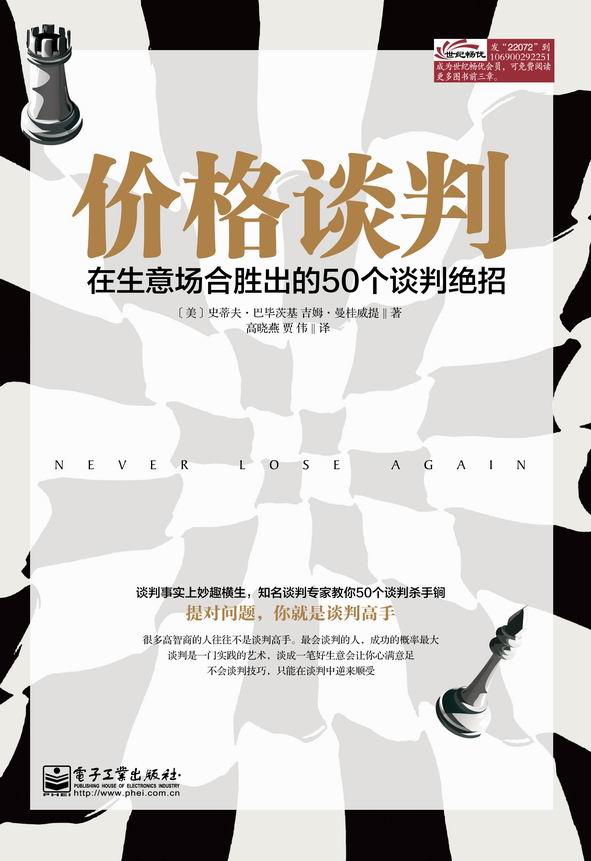 您好,您现在的位置是:首页 >> 电子图书馆 >> 电子图书展示 >> 价格谈判: 在生意场合胜出的50个谈判绝招