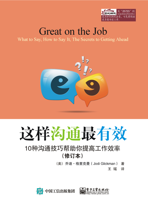您好,您现在的位置是:首页 >> 电子图书馆 >> 电子图书展示 >> 这样沟通最有效:10种沟通技巧帮助你提高工作效率(修订本)