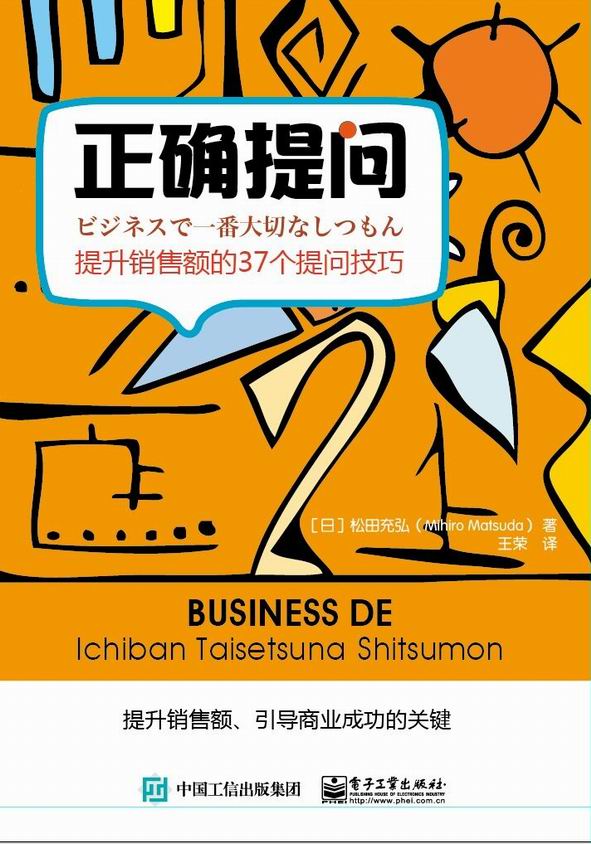 本书告诉读者何为正确提问,并介绍了通过提问来提升销售额和商业成果的方法。作者认为,在强化与客户的关系时,正确提问能发挥超乎人们想象的力量;能赋予被提问者自己找到问题所在并找到解决方案的能力。本书从提问的基础知识、实际应用及工具三大部分给出了如何正确提问的37个技巧(含方法和法则)及相关训练。此外,本书细分了13个主题,共104个问题,告诉读者如何使用作者独创的"魔法提问曼陀罗表”对问题进行详细分析,以引导商业成功。
