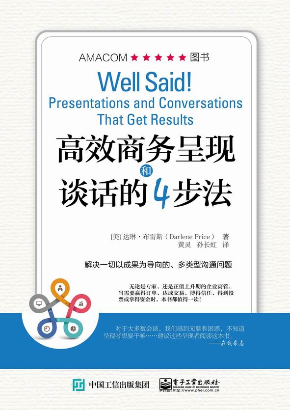 您好,您现在的位置是:首页 >> 电子图书馆 >> 电子图书展示 >> 高效商务呈现和谈话的4步法