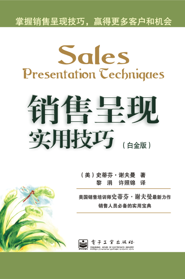 通过阅读本书并认真实践销售呈现的技巧,你将赢得更多听众的注意,你所做的销售呈现将变得与众不同,并好评如潮。美国顶级企业销售培训大师史蒂芬?谢夫曼在书中向你展示在销售呈现不同阶段的相应技巧。全书共分为四大部分25章,每一章介绍一种技巧,每一种技巧都如同一条锦囊妙计,不仅使你遇到的问题迎刃而解,而且灵活组合使用这些技巧更能使你的演示锦上添花。