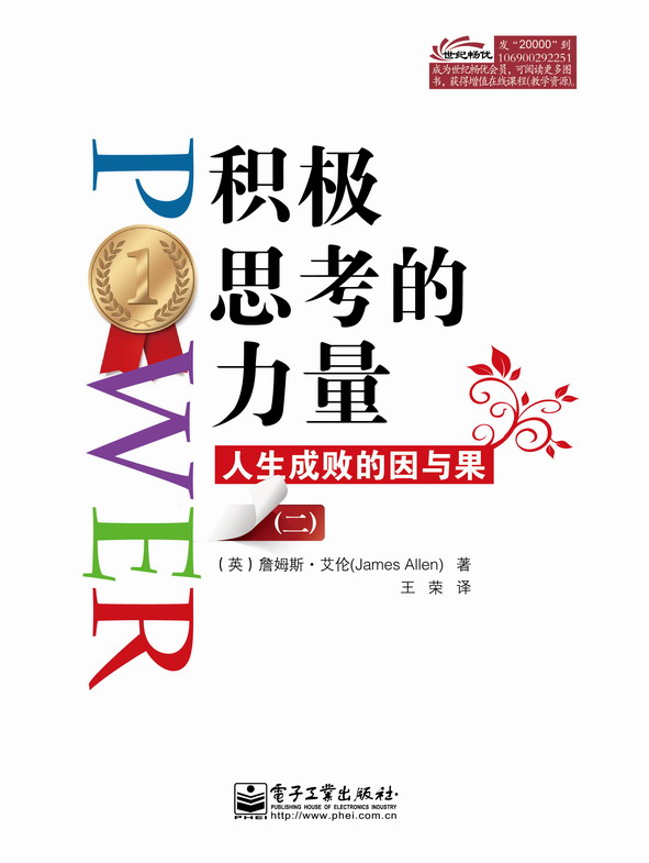本书与《积极思考的力量:人生成败的因与果》(一)一起,完整地展示了詹姆斯.艾伦的思想精髓。在书中,作者用富有哲理的语言向我们阐释了一个这样的道理:一个人要想培养良好的性格,拥有健康的体魄,并最终取得梦想的成就,他首先必须在自己的内心培育正确的思想。 本书极大地影响了包括戴尔·卡内基和拿破尔·希尔等在内的成功学大师。