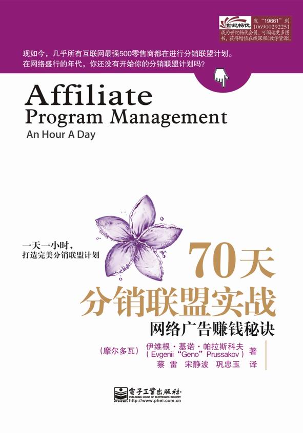 分销联盟计划是一种国外流行的互联网营销方式,它是当下网络商家赢取客户、网站赚取利润的首选之策。分销联盟计划就是商城通过返佣的形式吸引其他站点将商城广告放在加盟站点的网页上,如果顾客通过这些广告进入商城且产生购买行为,商城将按照一定的规则返佣给加盟站点。本书通过告诉你在第几个月第几周应该干什么,来教你轻松建立并管理你的分销联盟计划,并使你最终获得利润。通过学习本书,任何与数字化营销相关的人士都会受益无穷。