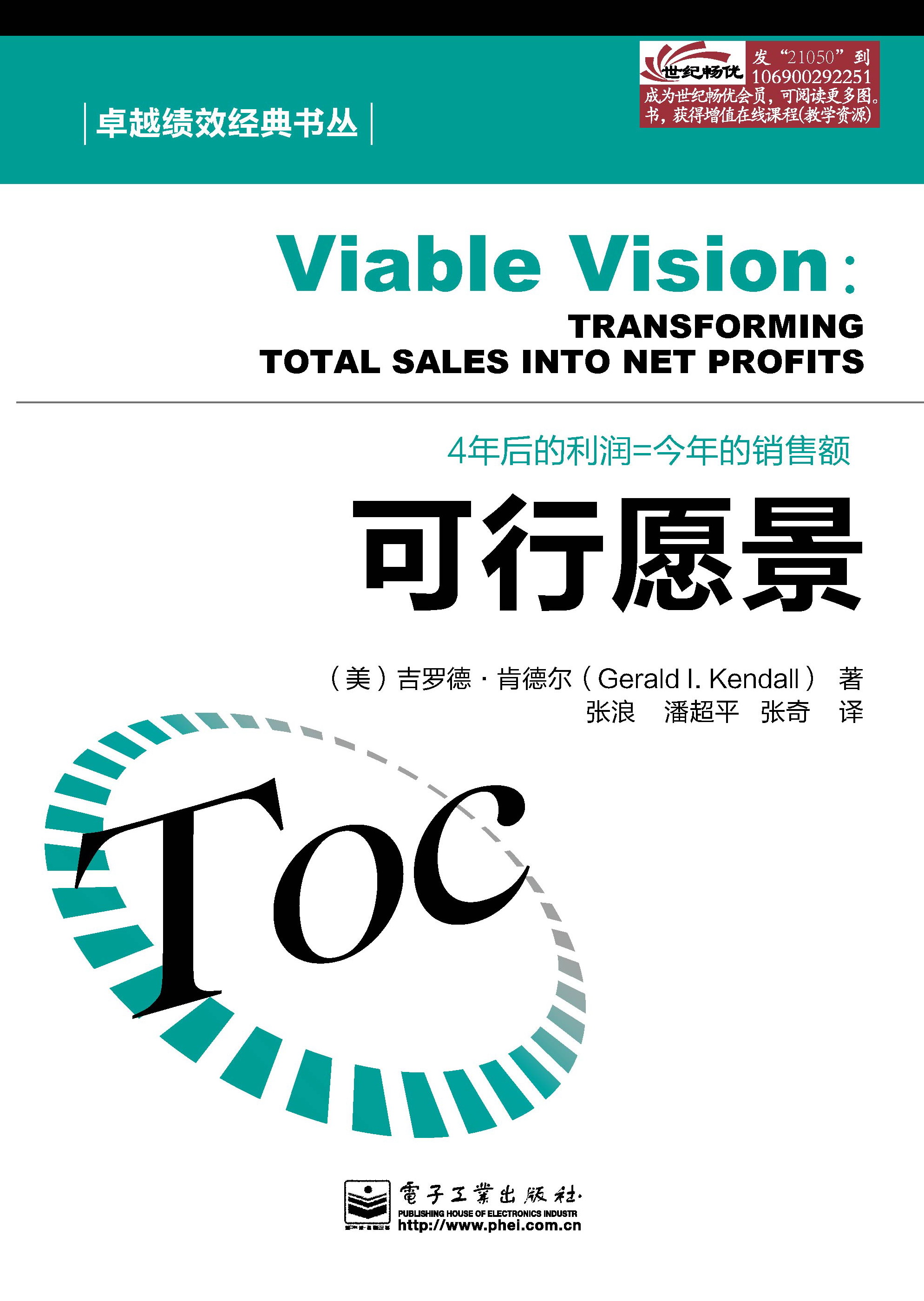 本书主要阐述TOC制约理论及可行愿景理论。TOC来源于自然科学,先有理论,后才有实践。它从整体上看待管理,把企业看成一条产生利润的链条,而决定整个链条强度的是这个链条上最薄弱的环节。而我们要做的就是解决这个最薄弱环节从而提高绩效。“可行愿景(Viable Vision)”是指一个企业如果全面导入TOC,并且持续推进TOC的改善,那么这个企业就会实现巨大的提升,大到大部分企业可以用四年的时间把现有的销售额变成净利润。书中附有操作性极强的方法及形象化的分析模板和企业实际运作的案例。
